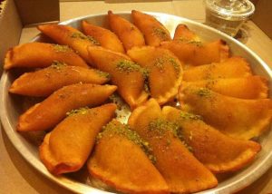 ـ القطايف: صنف حصري تقريبًا لشهر رمضان، تُحشى بالمكسرات أو الكريمة أو الجبن، وتُقلى ثم تُسقى بالقطر (الشربات).